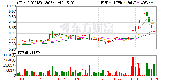 然而,随着重整投资人阵容及具体方案细节在11月15日、17日陆续公布,市场情绪出现明显逆转。11月17日、18日,*ST张股连续两日盘中跌停;至11月19日收盘报8.39元/股,单日下跌3.34%。
